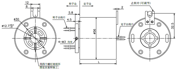 緊定螺絲固定。定子部分通過(guò)止轉(zhuǎn)片與設(shè)備固定部位連接。 |